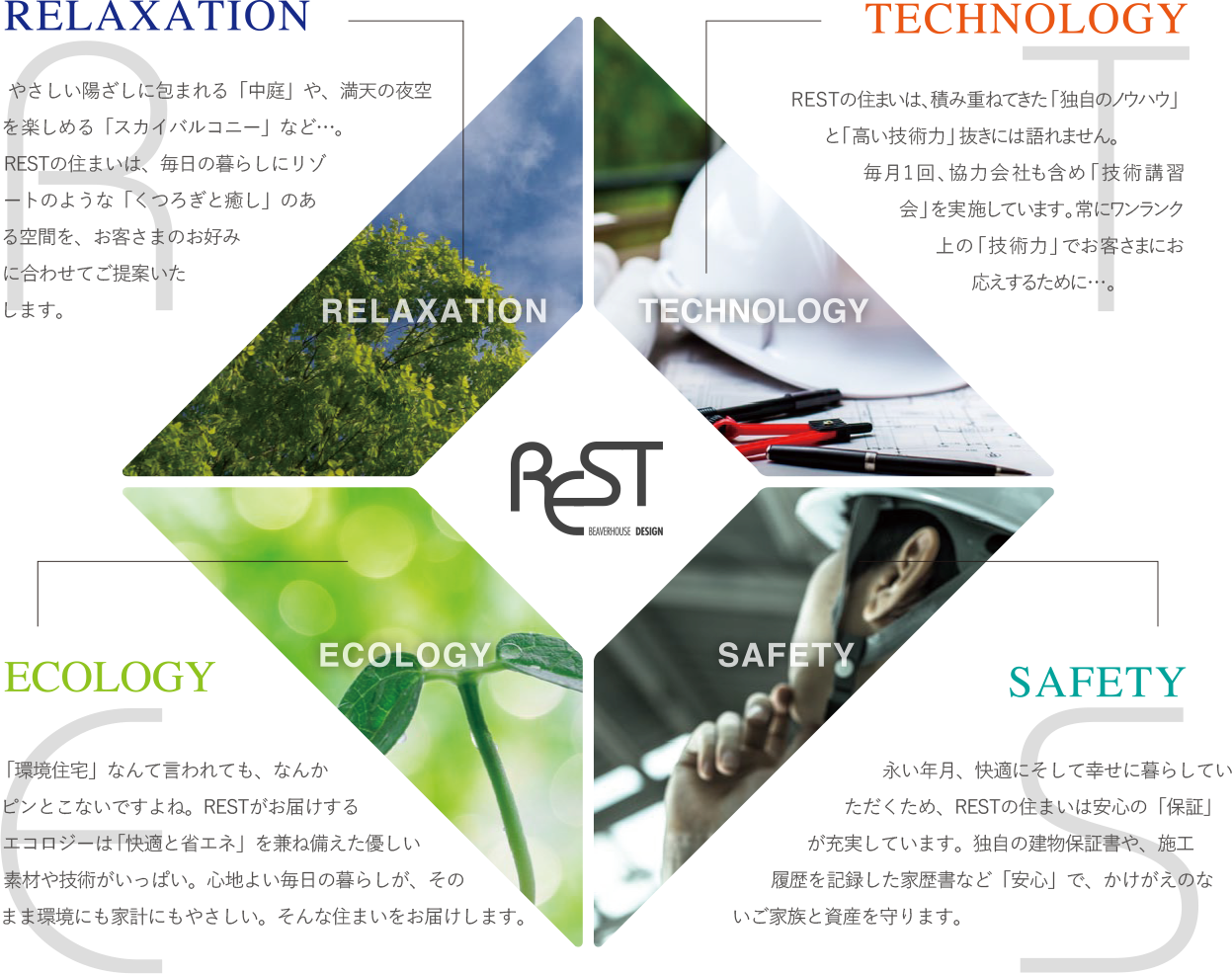 「relaxation」「ecology」「safety」「technology」のテーマを盛り込んだ『REST(レスト)』を軸に、