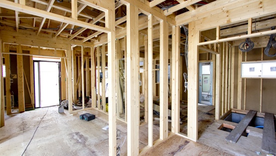 上の写真は上棟が終わり、屋根・防水・サッシを取付け、断熱工事を行う前の状態です。