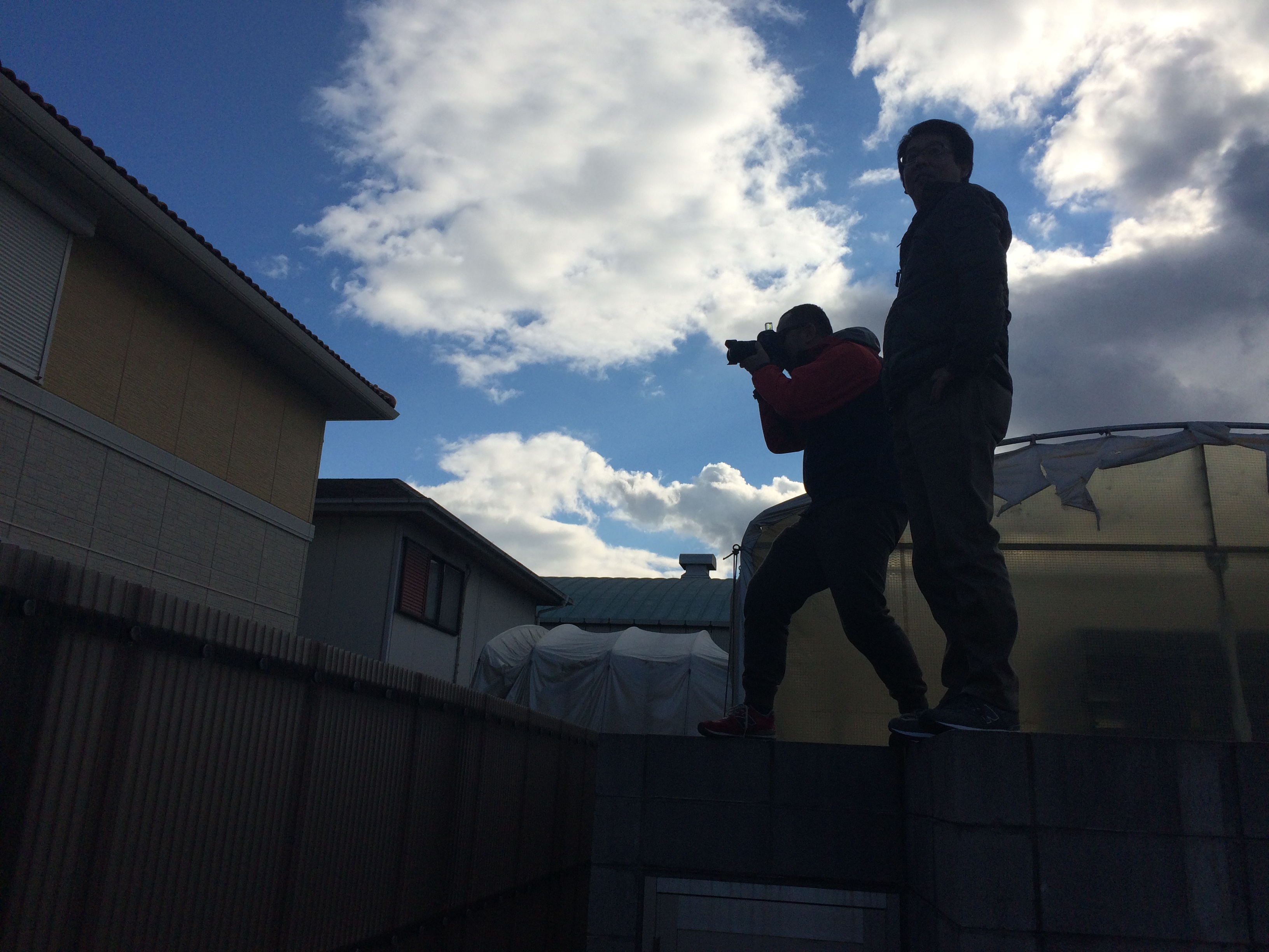 カメラマンさんも塀の上から命がけ?の撮影です。