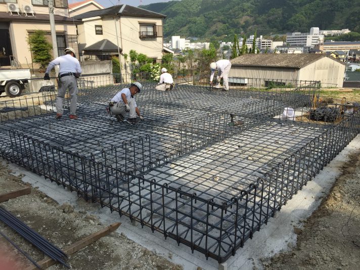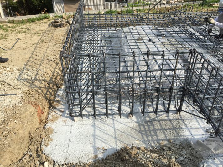 基礎工事が始まり現場確認に行くと配筋工事が行われていました