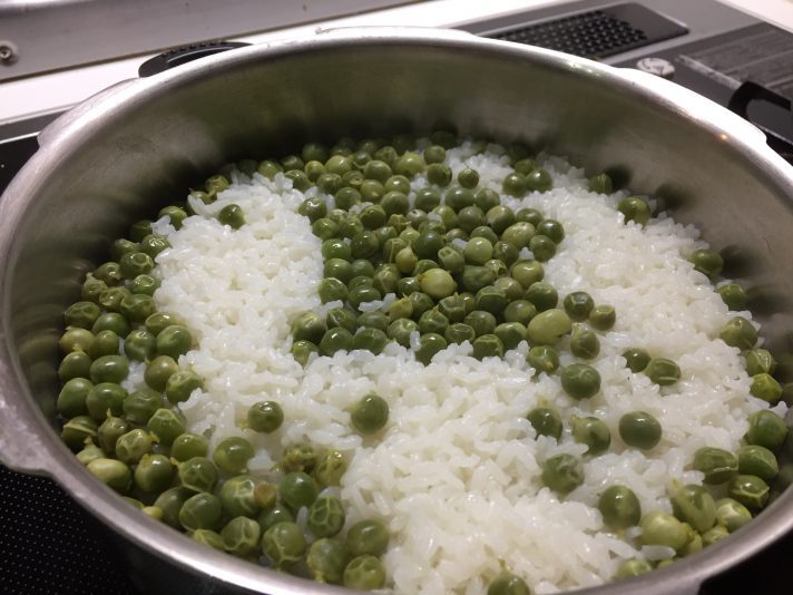 旬の物は身体に良いと言われています今日は朝から「豆ご飯」です