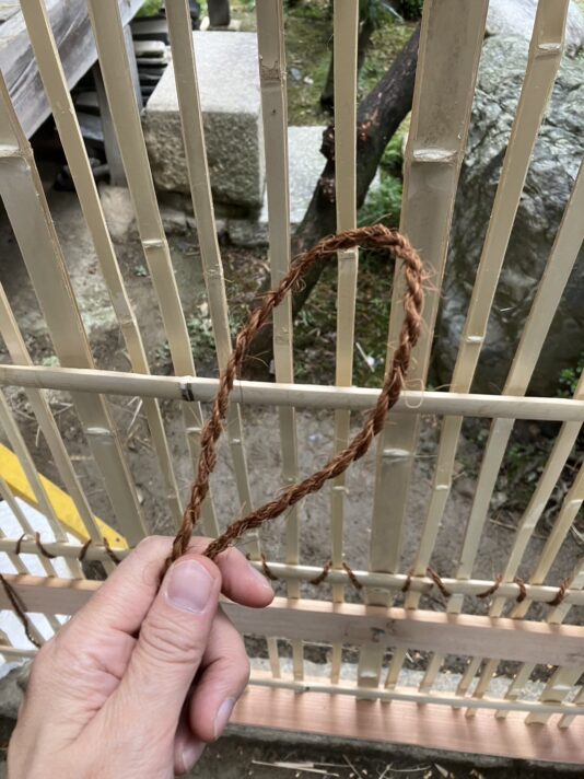貫の部分は土が乗りにくいので棕櫚縄で編みます。