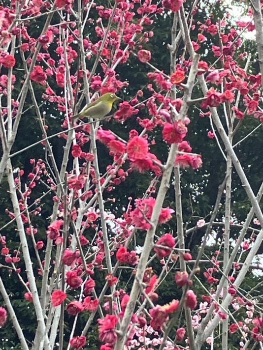 今年は小鳥が沢山梅の花をつついていました。