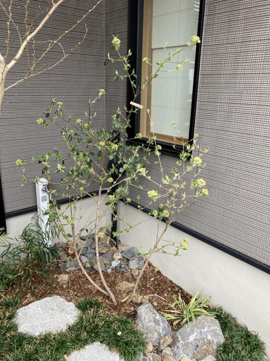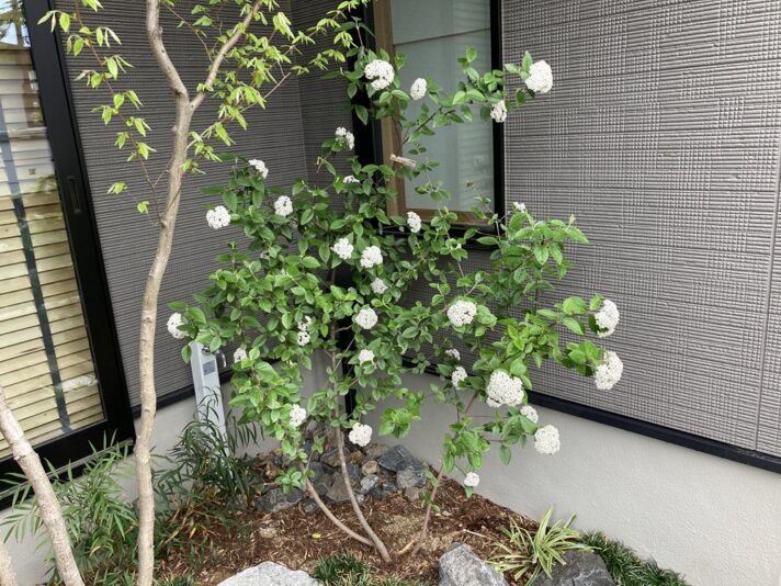 「ガマズミカルセフィーナ」は白い可愛らしい花が咲いてます