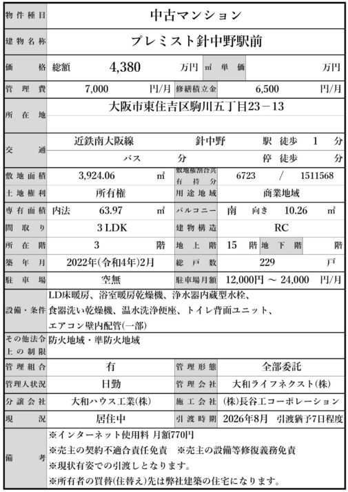 売買契約成立の際は規定の仲介手数料を申し受けます。
