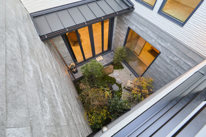 一番の拘りポイントは、建物の中心に配置した「和風の中庭」です。